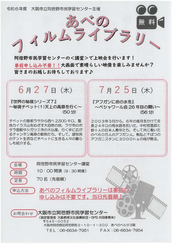 阿倍野市民学習センターの講堂で上映会を行います! 事前申し込み不要!!大画面で素晴らしい映像を楽しみませんか? 皆さまのお越しお待ちしております♪