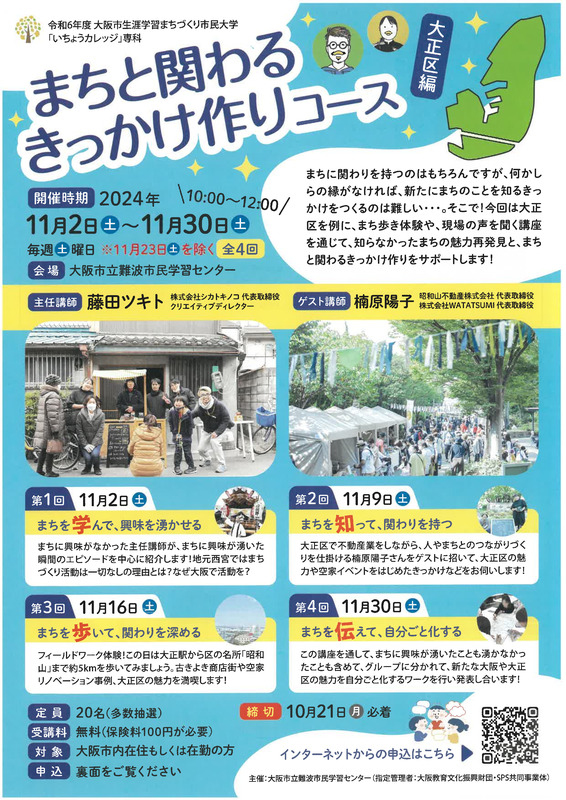 令和6年度 大阪市生涯学習まちづくり市民大学「いちょうカレッジ」専科 まちと関わるきっかけ作りコース 大正区編 第4回