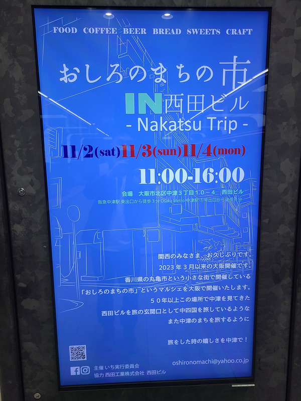 関西のみなさま、お久しぶりです。2023年3月以来の大阪開催です。香川県の丸亀市という小さな街で開催している「おしろのまちの市」というマルシェを大阪で開催いたします。50年以上この場所で中津を見てきた西田ビルを旅の玄関口として中四国を旅しているような。また中津のまちを旅するように旅をした時の嬉しさを中津で!