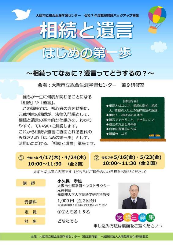 講師: 小久保 孝雄 (大阪市生涯学習インストラクター、元裁判官、元京都大学大学院法学研究科教授)