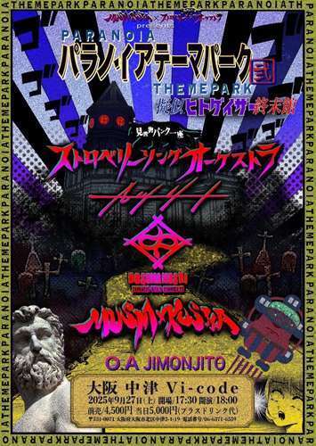 PARANOIAテーマパークのイベントが開催されます。出演はストロベリーソングオーケストラなど。 開場は17:30、開演は18:00です。 チケット料金は前売り4,500円、当日5,000円(プラスドリンク代)。