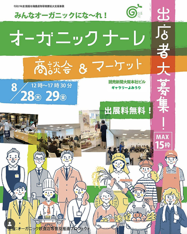 令和7年度 国産有機農産物等需要拡大支援事業として、オーガニックナーレ 商談会 & マーケットを開催します。出展料は無料です。皆様のご参加をお待ちしております。