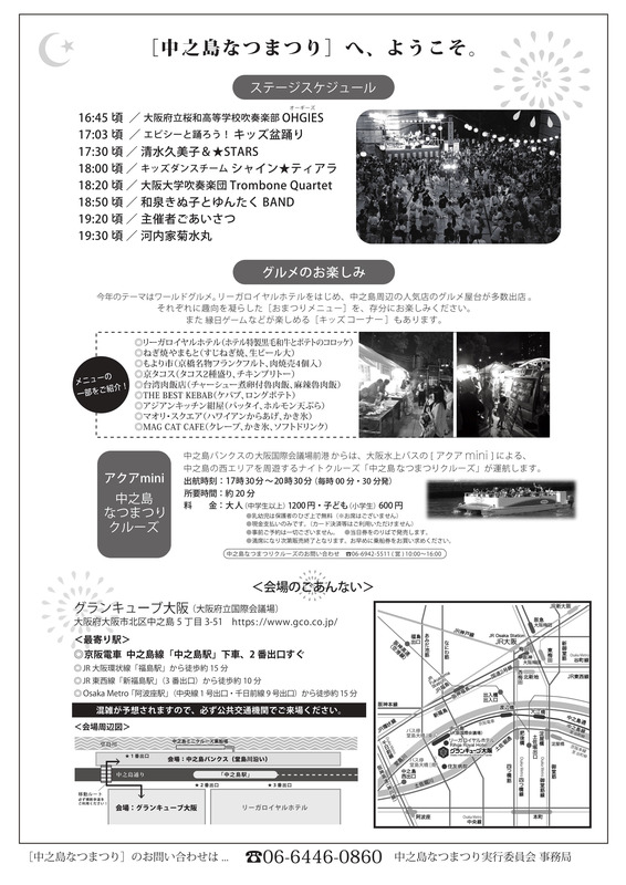 中之島なつまつり実行委員会 事務局06-6446-0860http://nakanoshima-natsumatsuri.jp/