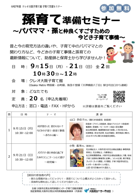 令和7年度 クレオ大阪子育て館 子育て支援セミナー - 孫育て準備セミナー