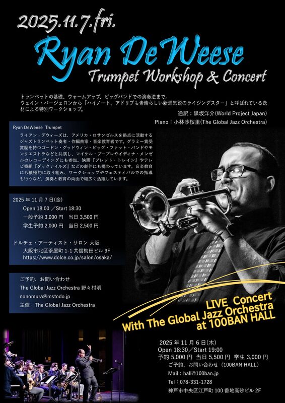 ライアン・デウィーズは、アメリカ・ロサンゼルスを拠点に活動するジャズトランペット奏者・作編曲家・音楽教育者です。