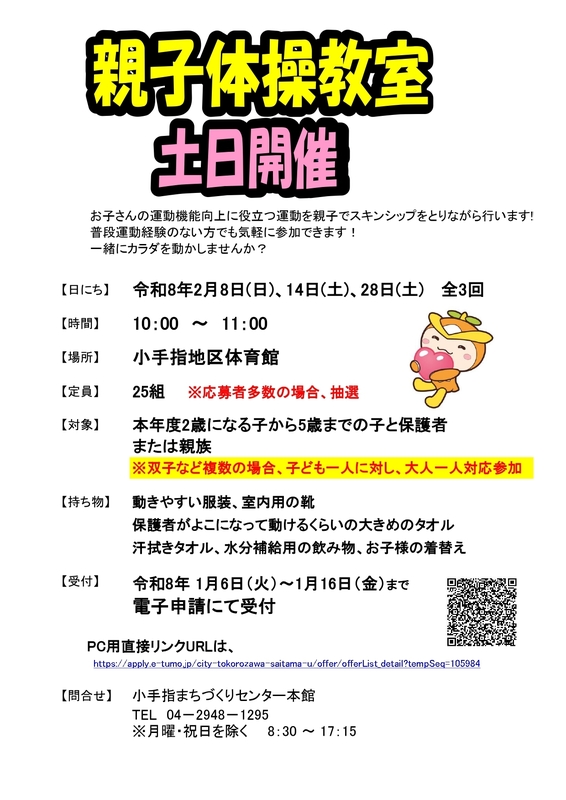 お子さんの運動機能向上に役立つ運動を親子でスキンシップをとりながら行います! 普段運動経験のない方でも気軽に参加できます! 一緒にカラダを動かしませんか?
