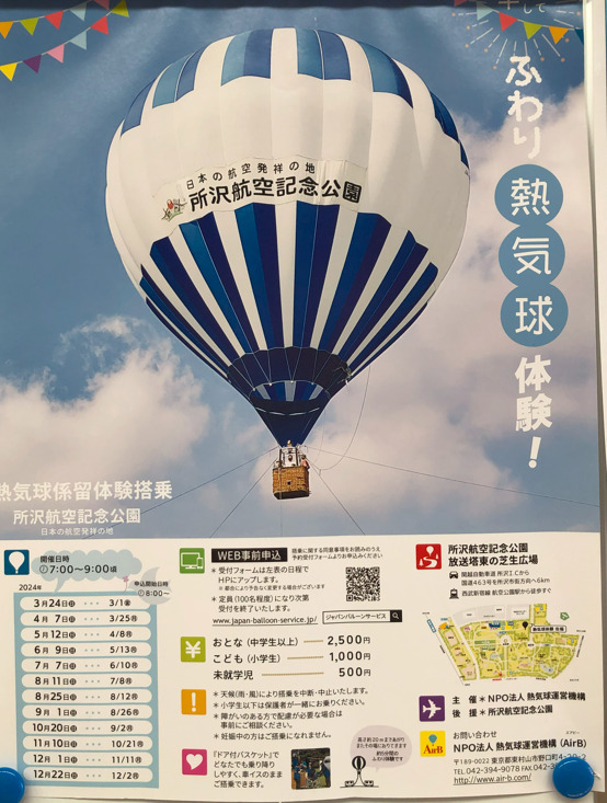 日本の航空発祥の地である所沢航空記念公園で熱気球体験が開催されます。開催日時は2024年3月24日から12月22日までの指定日に7:00~9:00頃です。定員は100名程度で、WEB事前申込が必要です。料金はおとな (中学生以上)が2,500円、こども (小学生)が1,000円、未就学児が500円です。小学生以下は保護者が一緒にお乗りください。障がいのある方で配慮が必要な場合や妊娠中の方は事前にご相談ください。また、「ドア付バスケット」を使用しているため、どなたでも乗り降りしやすく、車イスのままご搭乗できます。