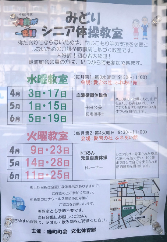 寝たきりにならないためや、 閉じこもり等の支援を必要としないための介護予防事業に基づく教室です。大好評! 初心者大歓迎! 緑町町会会員の方は、いつからでも参加できます。