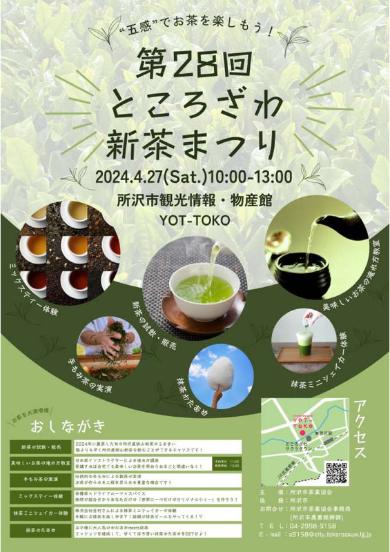 所沢市で開催される「第28回ところざわ新茶まつり」では、様々なお茶に関連する体験が楽しめます。ミックスティー体験、手もみ茶の実演、抹茶ミニシェイカー体験、抹茶わたあめの販売など、お茶の魅力を五感で楽しむことができます。また、日本茶インストラクターによる美味しいお茶の淹れ方教室も開催され、自宅でも美味しいお茶を煎れられるようになる貴重な機会です。