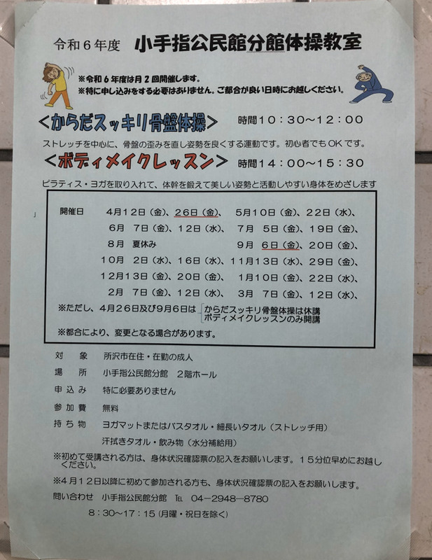 ただし、4月26日及び9月6日はからだスッキリ骨盤体操は休講