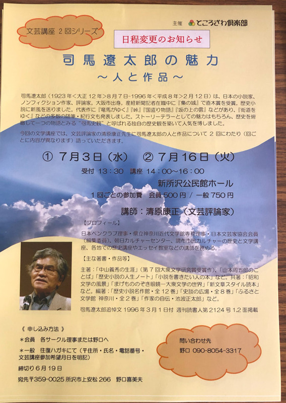 今回の文学講座では、文芸評論家の清原康正先生に司馬遼太郎の人と作品について2回にわたり (回ごとに内容が異なります) 語っていただきます。