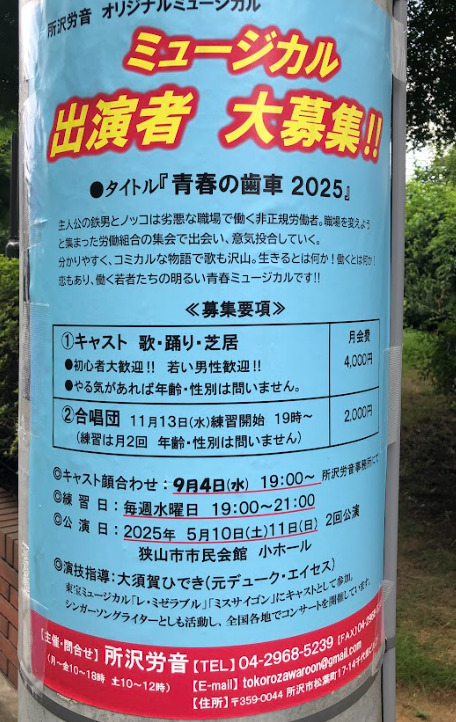 所沢音 オリジナルミュージカル『青春の歯車 2025』キャスト募集