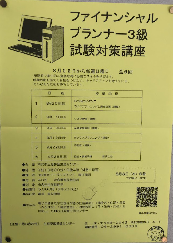 申込み: 電子申請または往復はがきの往信裏面に [講座名 住所・氏名 (ふりがな)・電話番号]、返信表面に [〒住所氏名]を明記し、8月8日必着で同センター