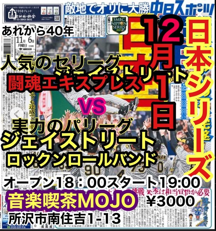 ジェイストリートロックンロールバンドズのライブが音楽喫茶MOJOで開催されます。オープン18:00、スタート19:00。チケットは¥3000です。