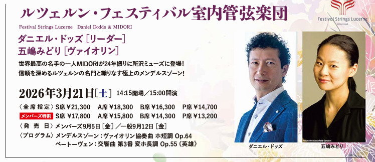 世界最高の名手の一人MIDORIが24年振りに所沢ミューズに登場! 信頼を深めるルツェルンの名門と織りなす極上のメンデルスゾーン!