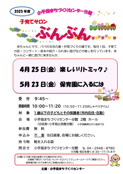 小手指まちづくりセンター分館・子育てサロン ぶんぶん - 保育園に入るには