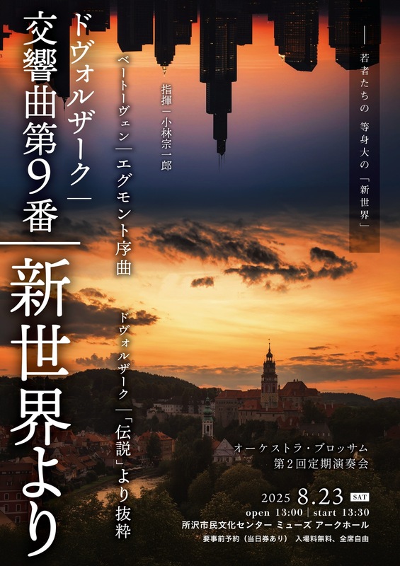 若者たちの等身大の「新世界」 指揮-小林宗一郎 交響曲第9 ドヴォルザー ベートーヴェン|エグモント序曲 交下 番 ク SAT 新世界より ドヴォルザーク|「伝説」より抜粋 要事前予約(当日券あり) 入場料無料、 全席自由。 ※詳細はこちら: