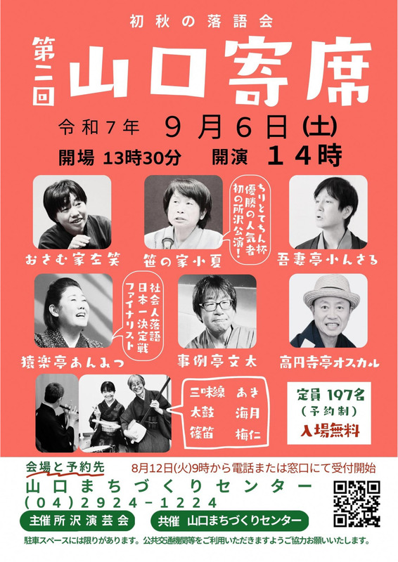 入場無料で、定員は197名です。予約制で、8月12日(火)9時から電話または窓口にて受付を開始します。駐車スペースには限りがありますので、公共交通機関等をご利用ください。