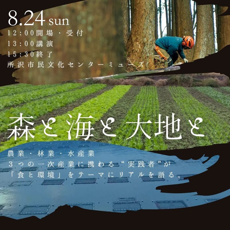 農業・林業・水産業の3つの一次産業に携わる“実践者”が「食と環境」をテーマにリアルを語る講演会です。12:00に開場・受付が開始され、13:00から講演が始まり、15:30に終了します。