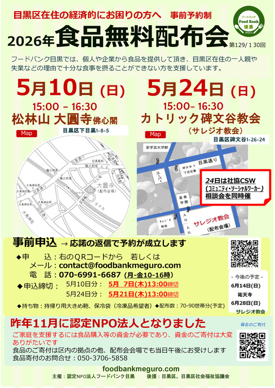 主催: 認定NPO法人フードバンク目黒 後援: 目黒区、目黒区社会福祉協議会