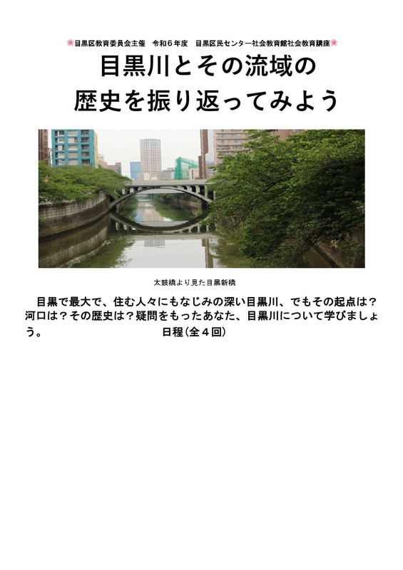 【対象・定員】目黒区内在住、在勤、在学の方優先 20人(定員を超えた場合は抽選)