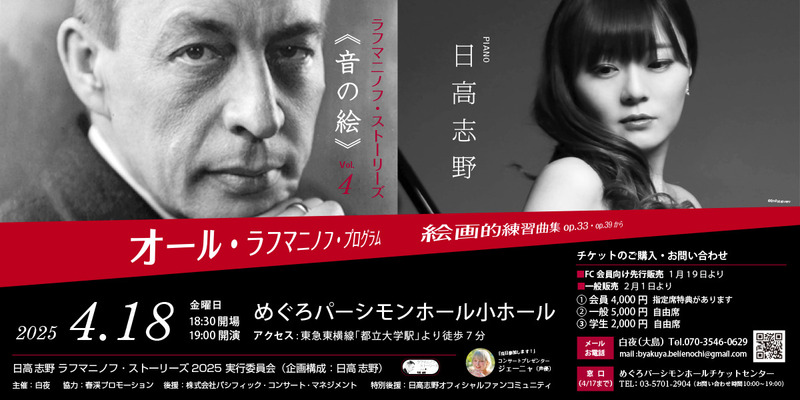 日高志野 ラフマニノフストーリーズ2025 実行委員会 (企画構成: 日高志野) 主催: 白夜 協力: 春渓プロモーション 後援: 株式会社パシフィック・コンサート・マネジメント 特別後援 日高志野オフィシャルファンコミュニティ