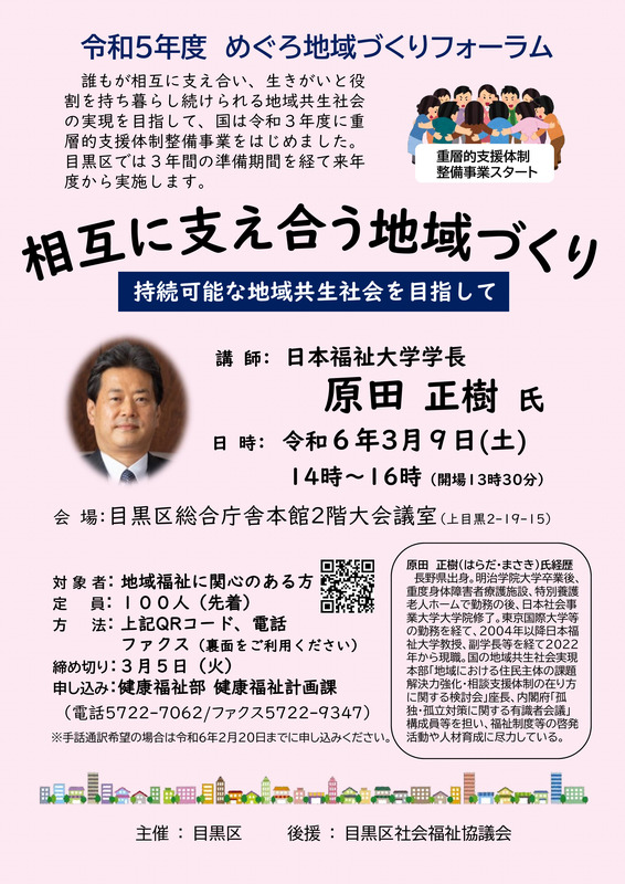 誰もが相互に支え合い、生きがいと役割を持ち暮らし続けられる地域共生社会の実現を目指して、国は令和3年度に重層的支援体制整備事業をはじめました。目黒区では3年間の準備期間を経て来年度から実施します。